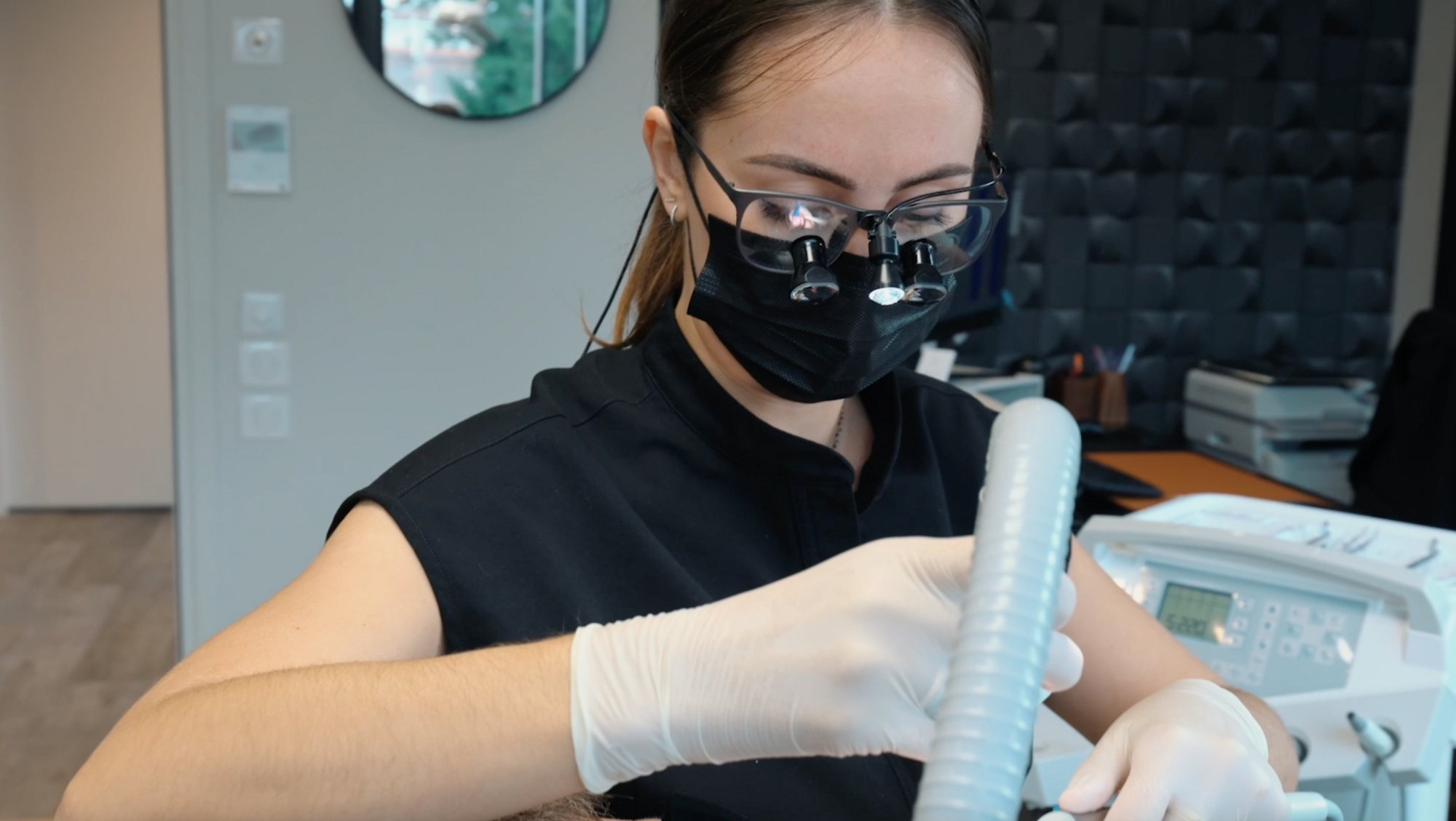 Les équipements du cabinet comprennent des technologies de pointe telles que le microscope dentaire, l'EMS, les empreintes numériques, la radiographie numérique, le CBCT (scanner 3D), le travail sous loupe, ainsi que trois blocs opératoires, assurant des soins précis et confortables.
